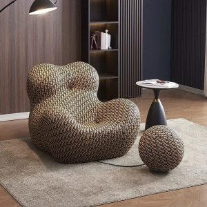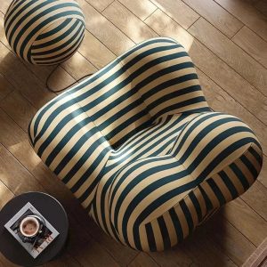 Bauhaus Designer Styles,Mom’s Embrace Sofa, Modern Striped Bean – Bag Sofa with Ottoman, Cozy & Stylish Living Room Furniture