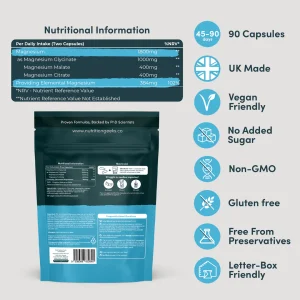 - Total elemental magnesium: 384mg (102% NRV)